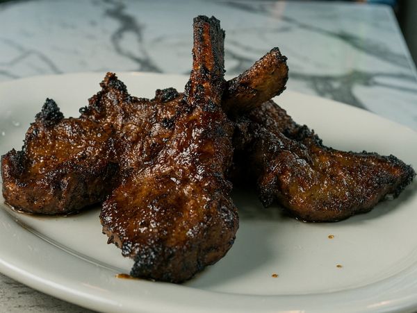 Grilled Jerk Lamb Chops and Shrimp, Creamy Jerk Infused Sauce, Peppers and Chef's Choice of Noodle.
